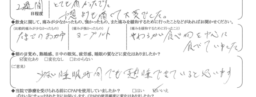 術後の患者様の感想 No. 3674