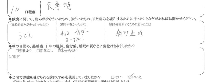 (痛みの程度について) 食事時