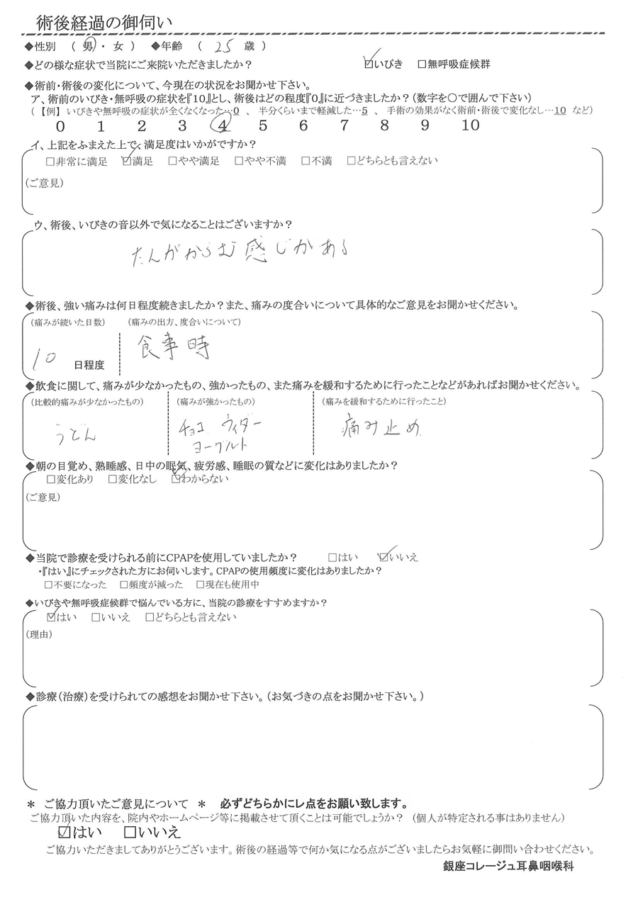 術後の患者様の感想 No. 3686