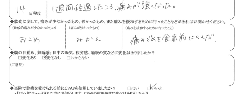 (痛みの程度について) 1週間経過した頃、痛みが強くなった。