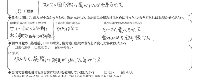 (痛みの程度について) すべての固形物は食べることが出来なかった