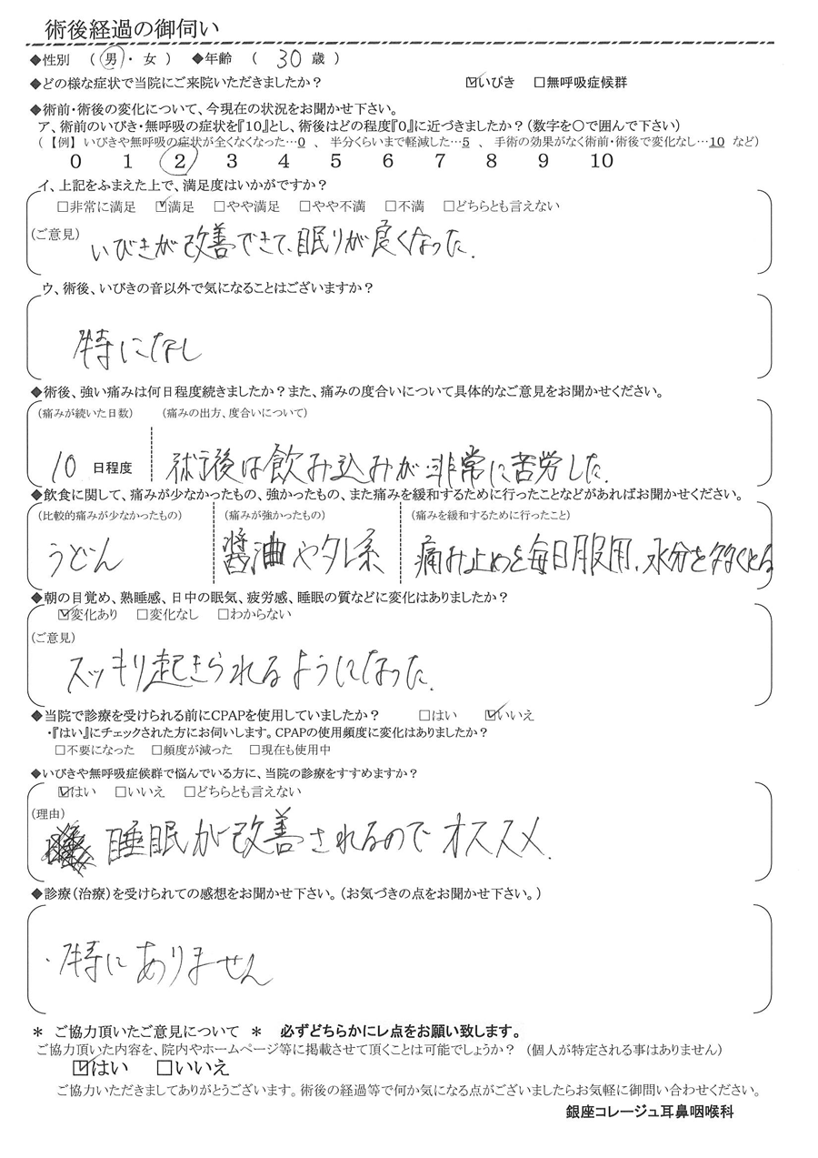 (ご意見)  いびきが改善できて眠りが良くなった