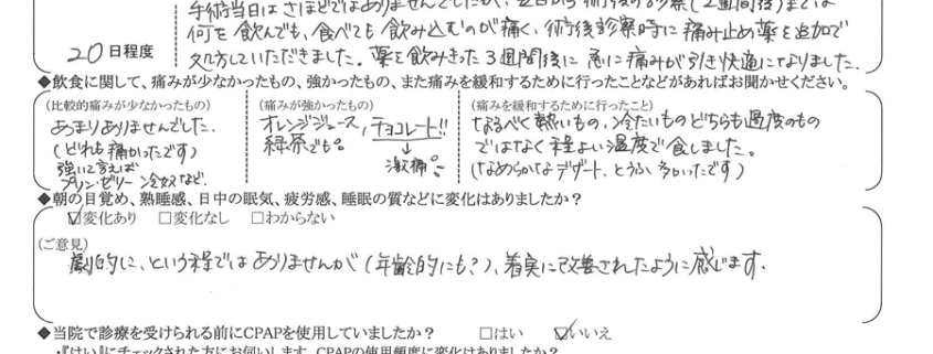 術後の患者様の感想 No.3714
