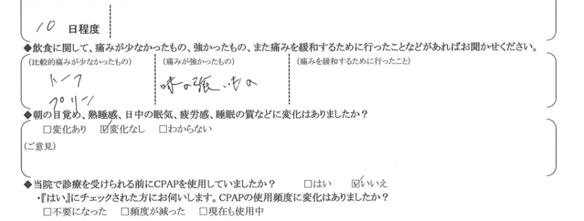 Q.術後、強い痛みは何日程度続きましたか?また、痛みの度合いについて具体的なご意見をお聞かせください。