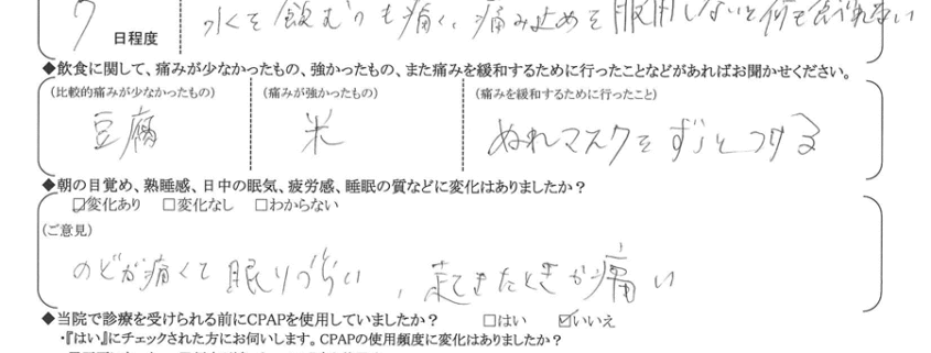 (ご意見) のどが痛くて眠りづらい、起きたときが痛い