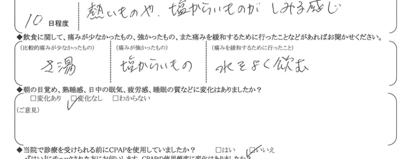 (痛みの程度について) 熱いものや、塩からいものがしみる感じ
