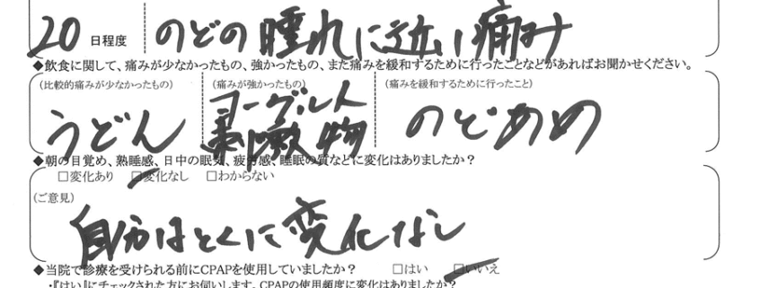 (ご意見) いびきラボでもかなり軽減されていた。