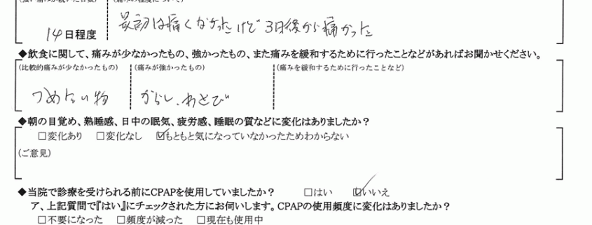 A:(痛みの程度について) 最初は痛くなかったけど3日後かた痛かった