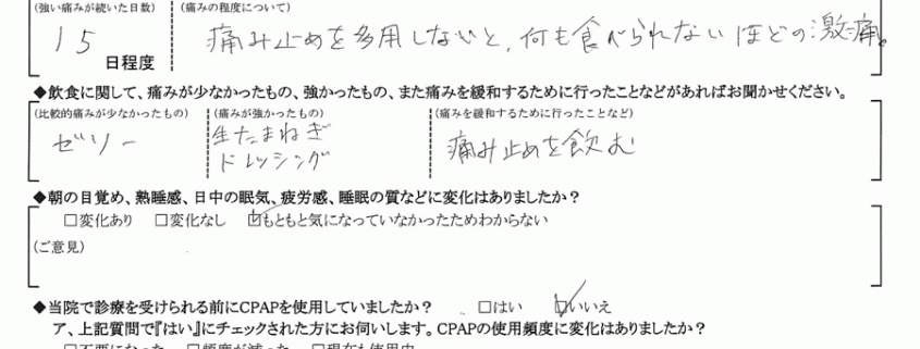 A:(痛みの程度について) 痛み止めを多用しないと、何も食べられないほどの激痛。
