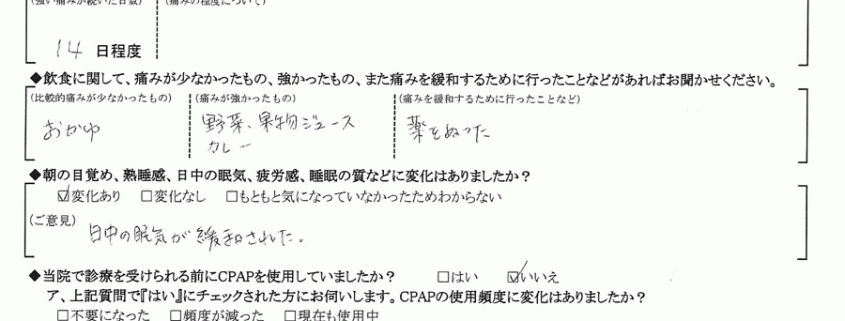 Q.日中の眠気や疲労感、睡眠の質に変化はありましたか?