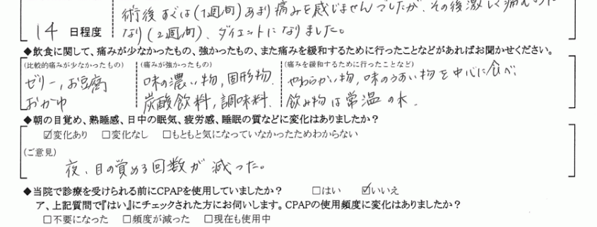 ウ、術後、いびきの音以外で気になる点はございますか?