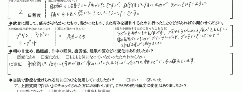 術後の患者様の感想 No.452