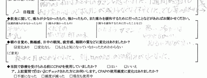 (ご意見) 夜中に目がさめなくなった。朝、口のかわき・のどの痛みがなくなった。