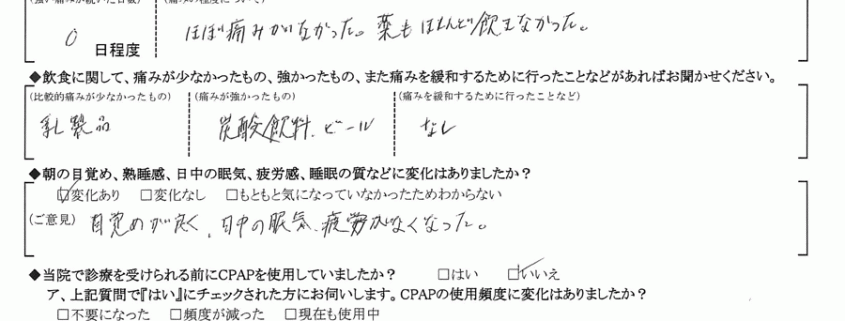 (ご意見) 目覚めが良く、日中の眠気・疲労感がなくなった。