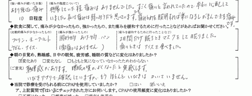 術後すぐ瞬間から息がしやすくなりました。手術は苦しいけどよかったと思いました。