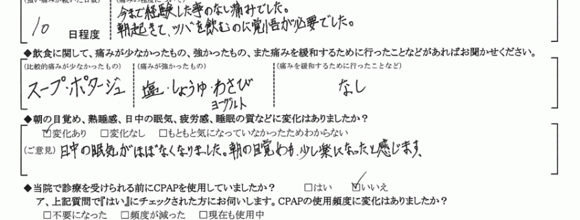 (ご意見) 日中の眠気がほぼなくなりました。朝の目覚めも、少し楽になったと感じます。