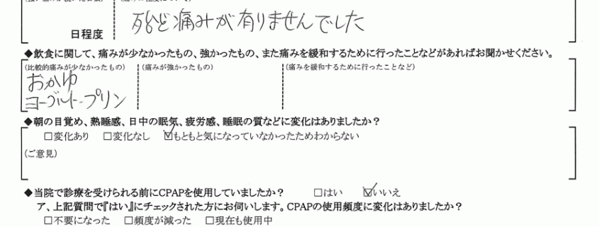 A:(痛みの程度について) 殆ど痛みが有りませんでした。