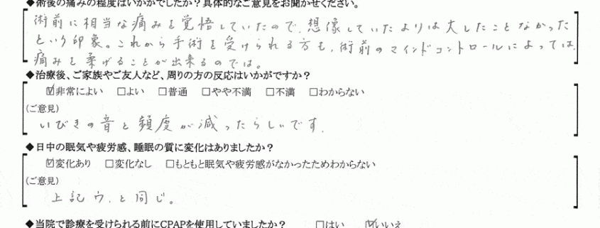 (ご意見) 日中の眠気はほぼなくなりました。車の運転も安心です。