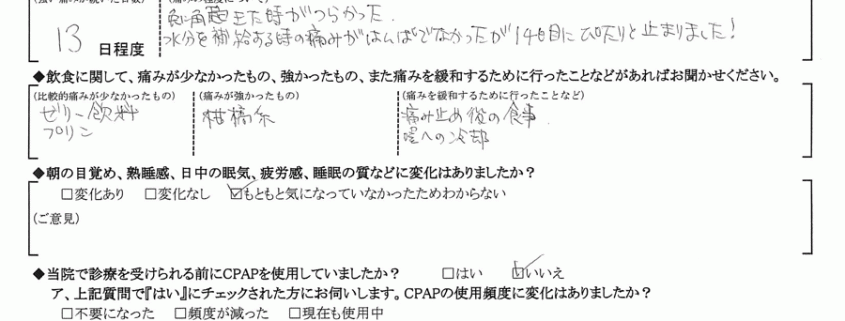 Q.診療(治療)を受けられての感想をお聞かせ下さい。
