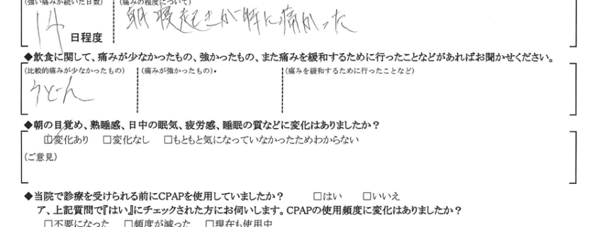 Q.術後、強い痛みは何日程度続きましたか?また、痛みの度合いについて具体的なご意見をお聞かせください。