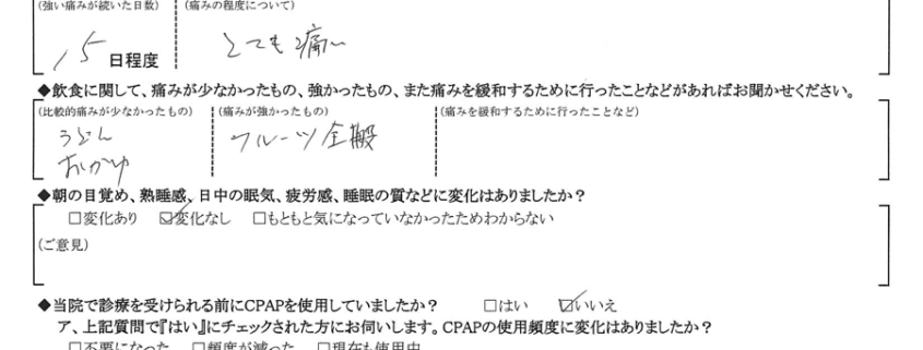 Q.術後、強い痛みは何日程度続きましたか?また、痛みの度合いについて具体的なご意見をお聞かせください。