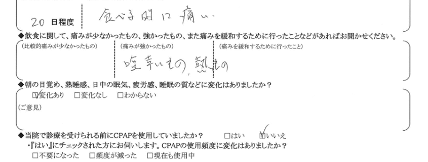 (痛みの程度について) 食べる時に痛い