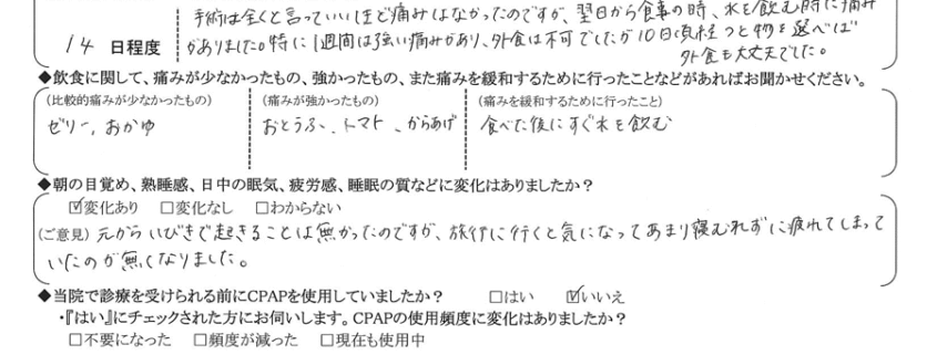 術後の患者様の感想 No.779