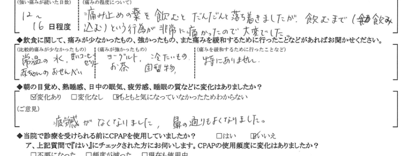 Q.診療(治療)を受けられての感想をお聞かせ下さい。