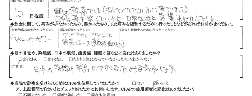 (ご意見)  日中の突然の眠気は少なくなったような気がします。