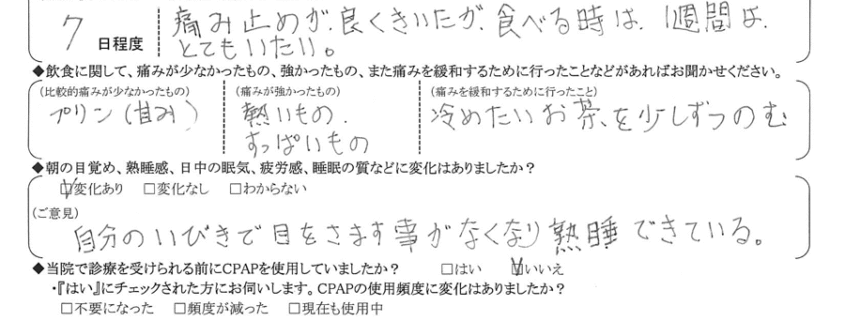 (ご意見) 無呼吸はなくなった。いびきは音量が小さくなった。