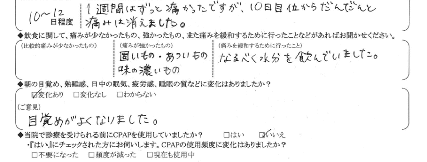 Q.術後、強い痛みは何日程度続きましたか?また、痛みの度合いについて具体的なご意見をお聞かせください。