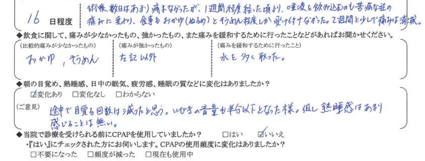 術後の患者様の感想 No.837