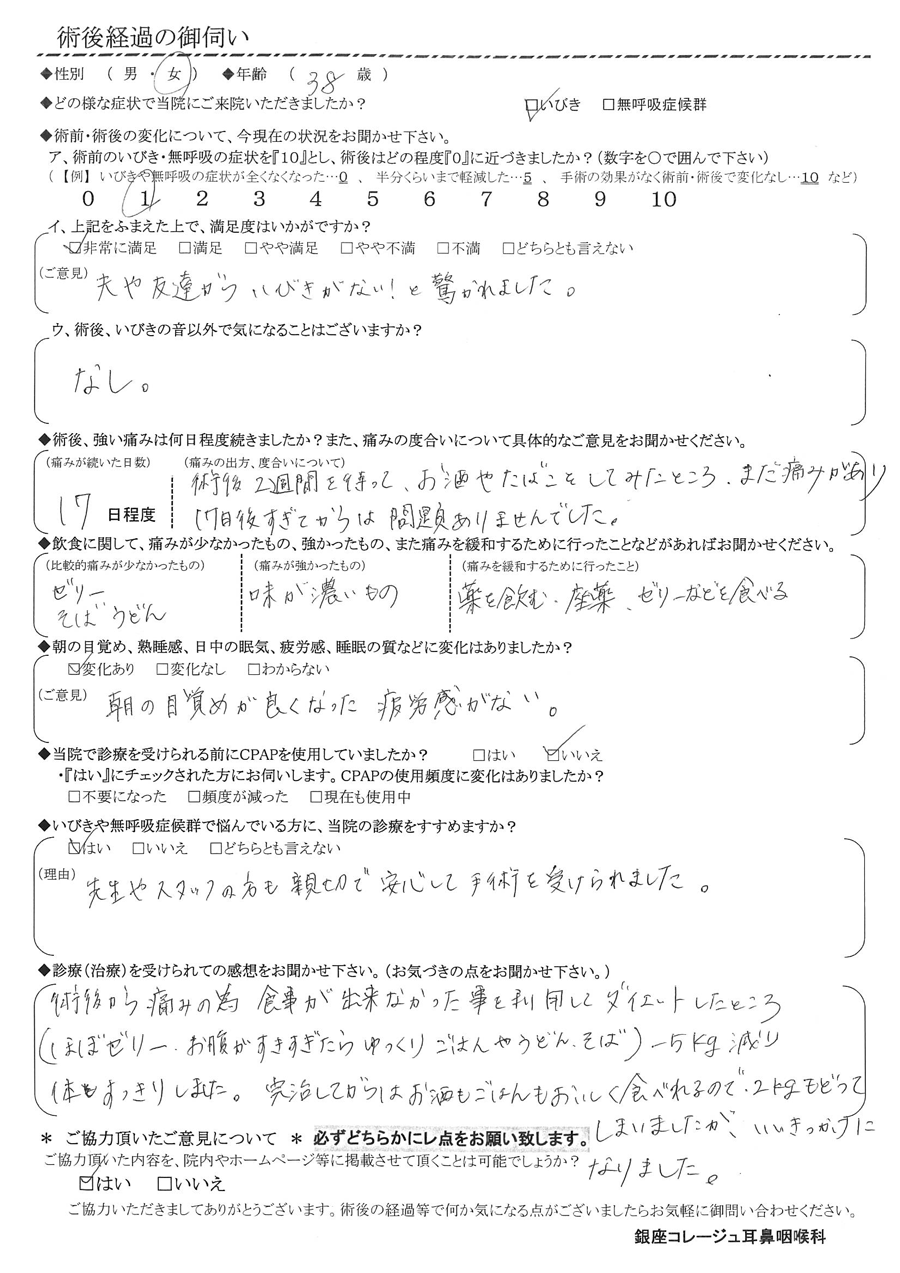 (ご意見) 夫や友達からいびきがない!と驚かれました。