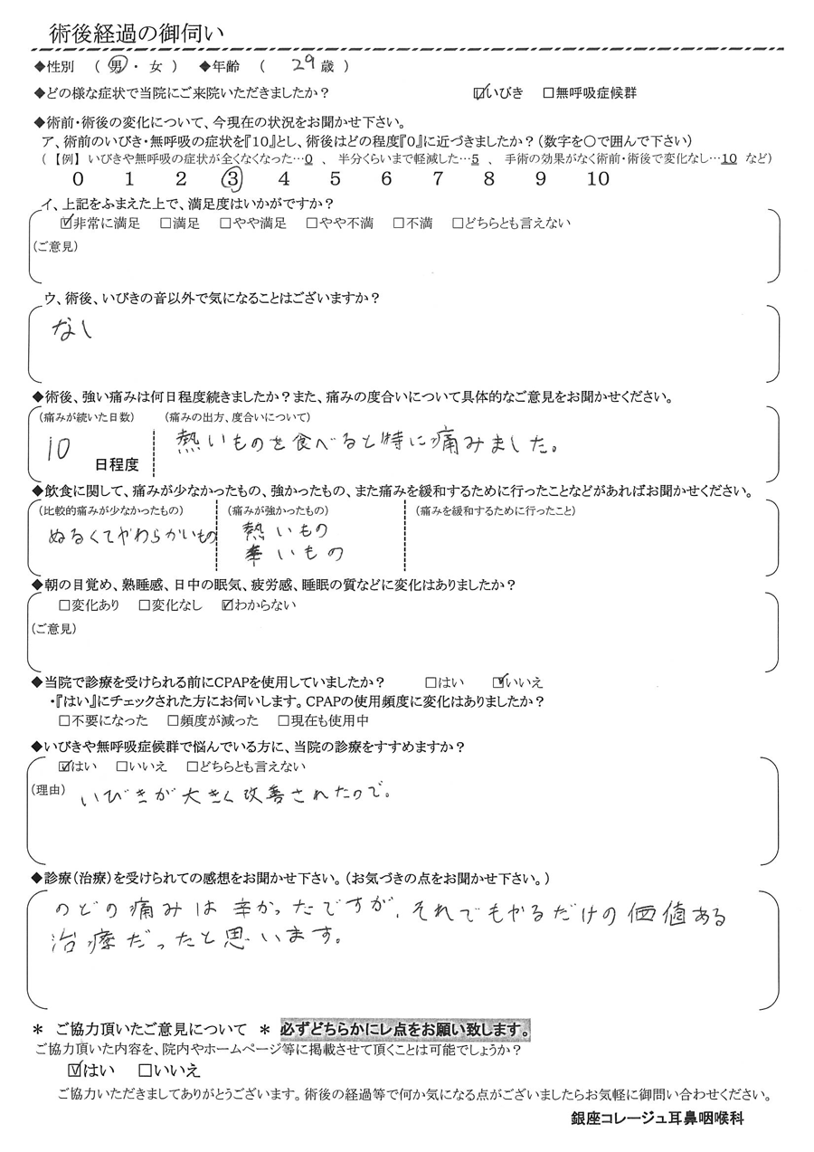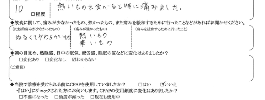 (理由)  いびきが大きく改善されたので