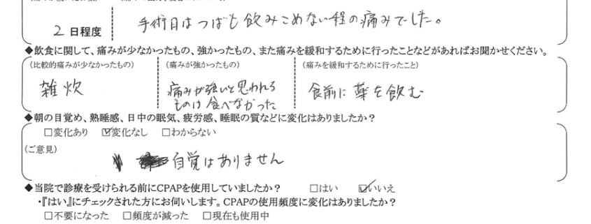 術後の患者様の感想 No.899