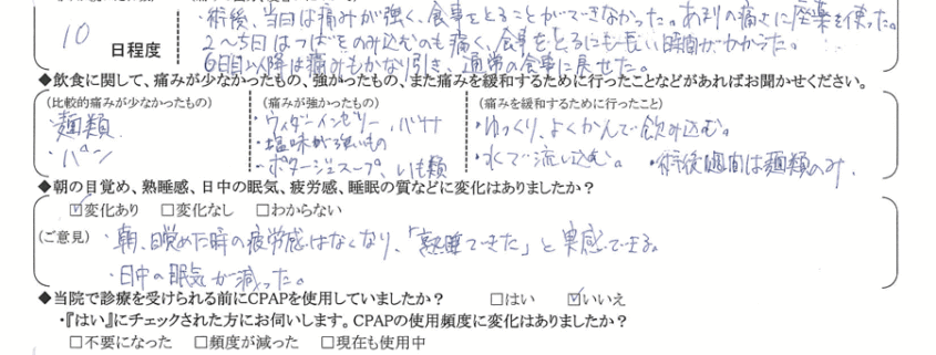 術後の患者様の感想 No.903