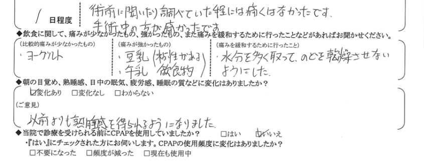 術後の患者様の感想 No.921