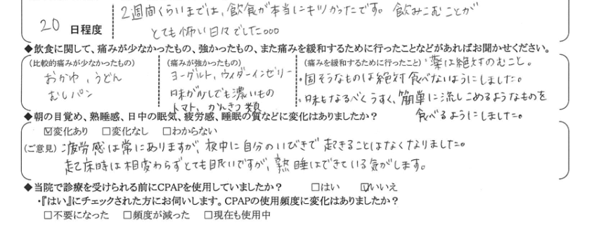 もっと若い時からいびきで悩んでいたので、私はもっと早くやりたかったです。