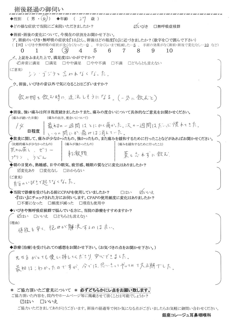 性別:女性/年齢27歳