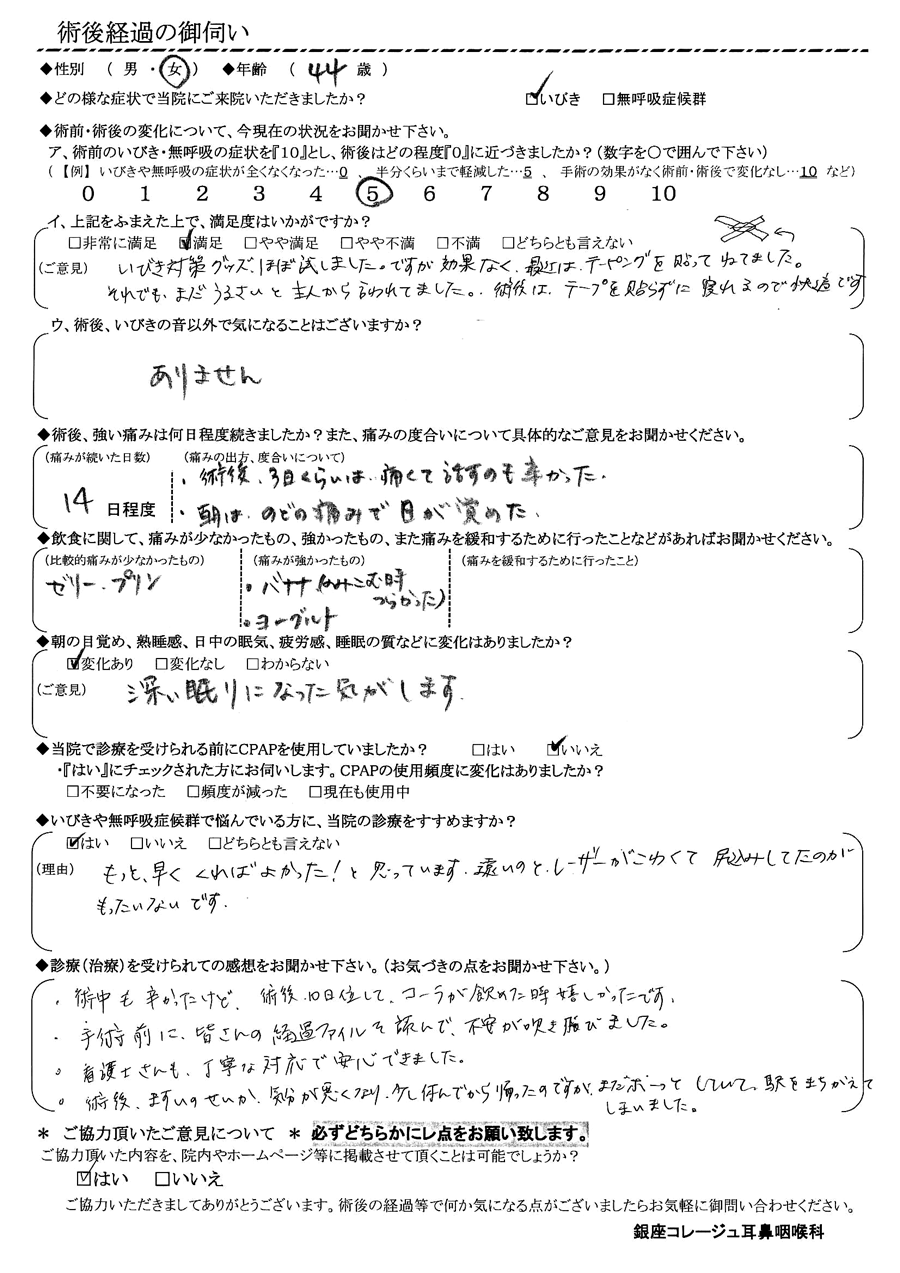 術後の患者様の感想 No.945