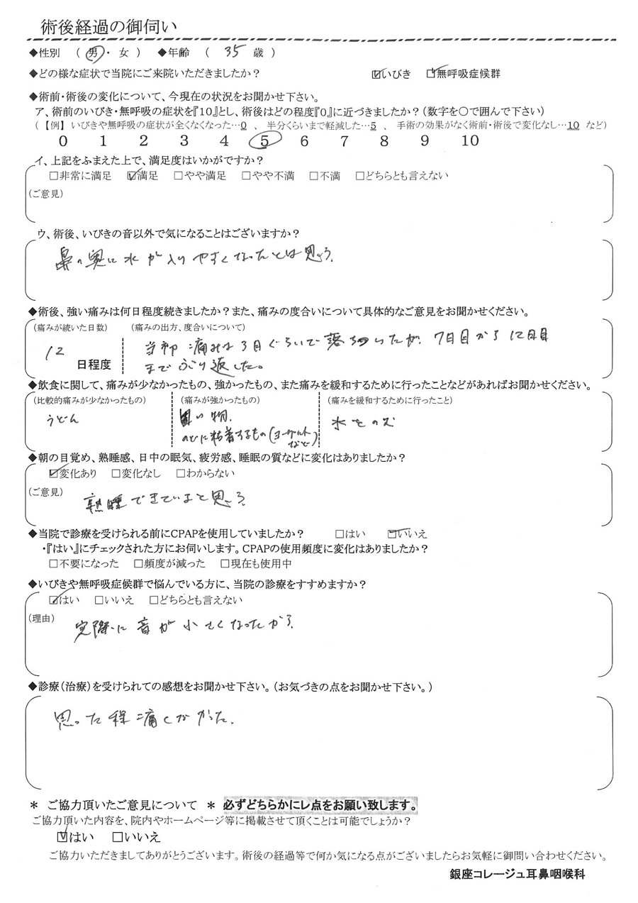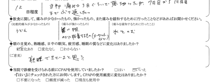 術後の患者様の感想 No.976