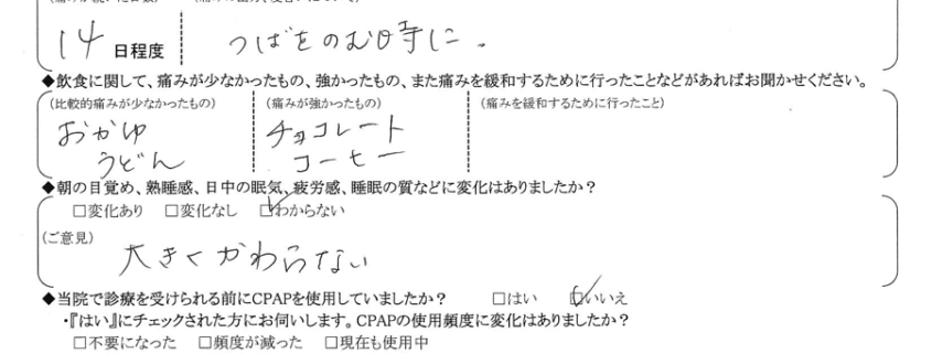 Q.飲食に関して、痛みが少なかったもの、強かったもの、また痛みを緩和するために行ったことなどあればお聞かせ下さい